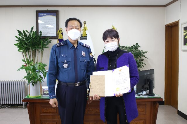 김진천 서장은 “소중한 생명을 살린 수상자께 축하드리며 앞으로도 주민과 경찰이 치안 파트너십을 형성할 수 있도록 노력하겠다.”고 밝혔다.
