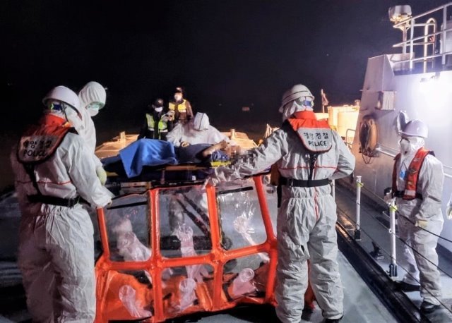 이에 완도해경은 해상에 풍랑주의보가 발효 중이었지만 경비정을 급파, 신속하게 현장에 도착하여 코로나19 방역수칙을 철저히 준수 후 고열환자인 A씨를 음압들 것을 이용하여 경비정에 편승시킨 후, 원격의료 시스템을 이용 환자의 안전상태를 확인하며 해남군 땅끝항으로 긴급이송하여 119구급대에 인계하였다.