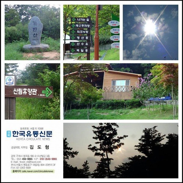 새벽 일찍 일어나 모두들 잠들어 있는 가운데 나 홀로 휴양림의 뒷산인 기반산 정상으로 다녀왔다. 평소에 산을 다니고 숲속길을 혼자 걷는 것이 익숙해 있는지라 별 무리 없이 정상을 다녀왔고 사람들이 잘 찾지 않은 기반산 정상에서 휴양림의 신선한 공기를 만끽하며 지난 밤에 있었던 일들과 오늘 할 일들에 대해 생각을 정리해 보는 시간도 가졌다. 일터로 되돌아 가게되면 밀린 일거리와 바쁜 일상으로 여유가 없겠지만 서도, 기반산 정상에서는 아무런 거리낌이 없었다. 마치 자유로운 새가 되어 숲속의 기운을 한껏 받는 자연의 일부가 된 것 같기도 해서 너무 좋았다.