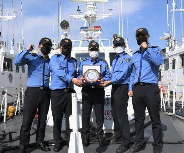 (전국= KTN) 윤진성 기자=완도해양경찰서(서장 안성식)는 “21년 서해청 최우수 닥터경비함정”에 선정된 P-57정에 명패와 표창을 수여했다고 4일 밝혔다.