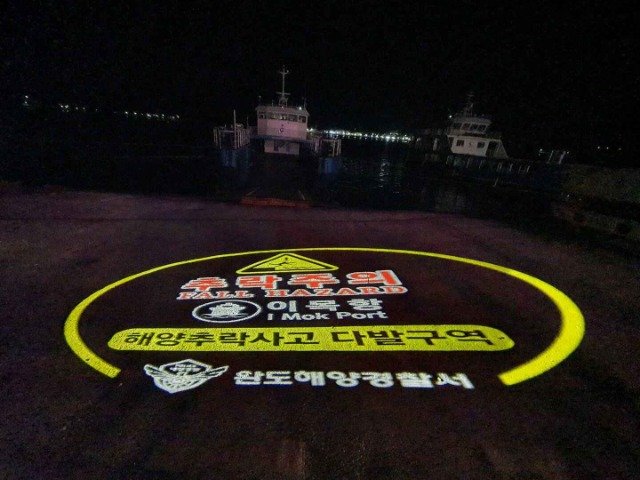 (전국= KTN) 윤진성 기자=완도해양경찰서(서장 김정수)는 관내 해상추락 다발구역에서의 안전사고 예방과 안전 경각심 제고를 위해 전남 완도군 노화읍 이목리 여객선 선착장(경사식 물량장)에 ‘로고젝터’를 설치했다고 밝혔다.