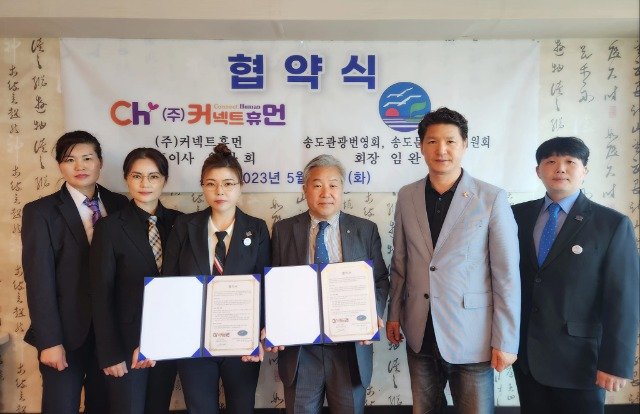 (전국= KTN) 윤진성 기자=글로벌 B2B, B2C 전문 소개 플랫폼 사회적 기업인 (주) 커넥트 휴먼 (대표이사 유라희)과 부산 송도에서 1957년 설립하여 현재 회원수 200명 이상의 송도관광번영회와 함께하는 송도문화축제위원회 (회장 임완수, 홍보실장 박우열)는 양사 간의 신뢰를 바탕으로 상생 협업을 위해 지난 16일 부산 계열사 실무진들 참석하에 협약식을 진행하였다.