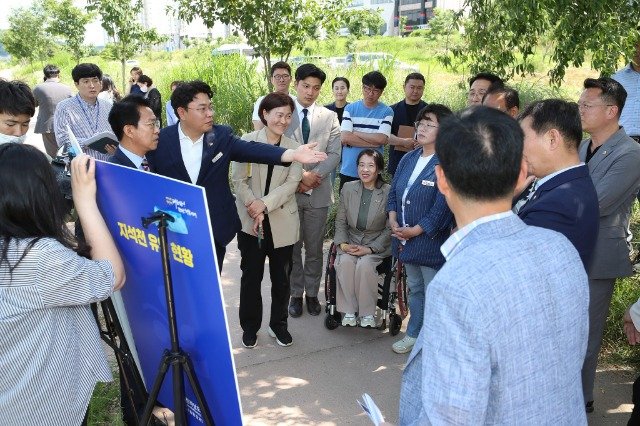 첫 방문현장은 광주시 생활하수 대부분을 처리하고 있는 광주시제1하수처리장과 광주광역시와 나주시의 합류점인 승천보, 그리고 비점오염원으로 수질이 악화된 지석천 일원을 점검했습니다.