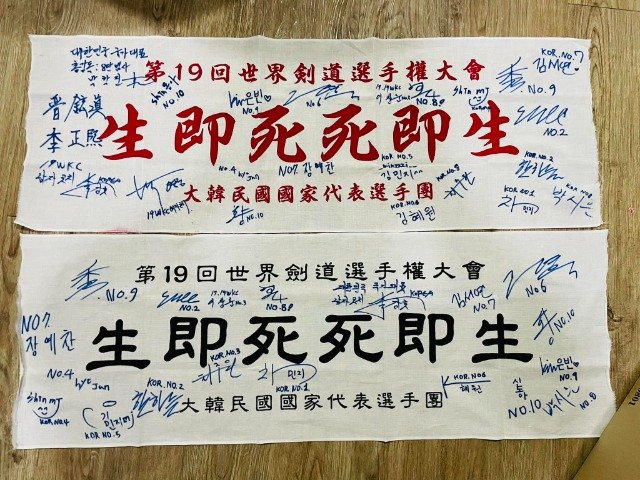 (전국= KTN) 윤진성 기자=영원한 검도 국가대표 2023.12.5.제 19회 세계검도선수권대회19회 국가대표 총감독님을 비롯해 남,녀 선수들 친필싸인을 기념 면수건에 직접받아서 주신 영원한 검도 국가대표 캡틴이자 검도 남자대표팀 코치, 구미시청 이강호 감독께서 선물해 주셨습니다. 멋진선물 감사드리며.