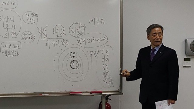 사진 설명: 도연 백광흠 자성명상 강연 현장, 인생의 최상의 순간은 최악의 순간을 경험함으로써 이루어진다.