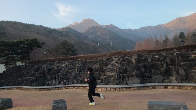 사진 설명: 금오산 앞을 달리는청년, 바이오IT분야 전문가를 목표로 하고 있다.