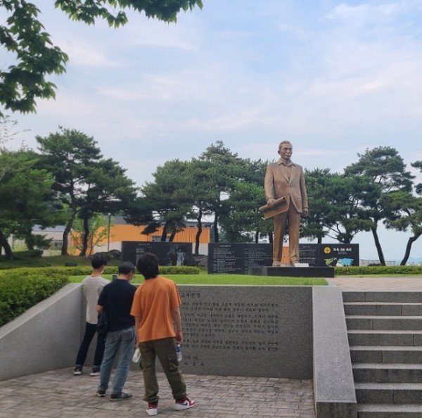 Photo description: A statue commemorating President Park Chung-hee in Sangmo-dong, Gumi, and a Saemaul Theme Park nearby make you reminisce about the dim memories of the 60s and 70s.