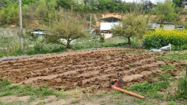 곡괭이로 일군 텃밭 전경, 현명한곡괭이질은 힘보다는 기술이 필요한 타이밍의 작업이다.