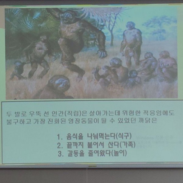 사진 설명: 구미놀자학교 인문놀이학 강연, 인간은 놀이를 통해 서로간에 친분을 쌓고 유대감을 가져 결국 생존을 위한 보호막을 만든다.