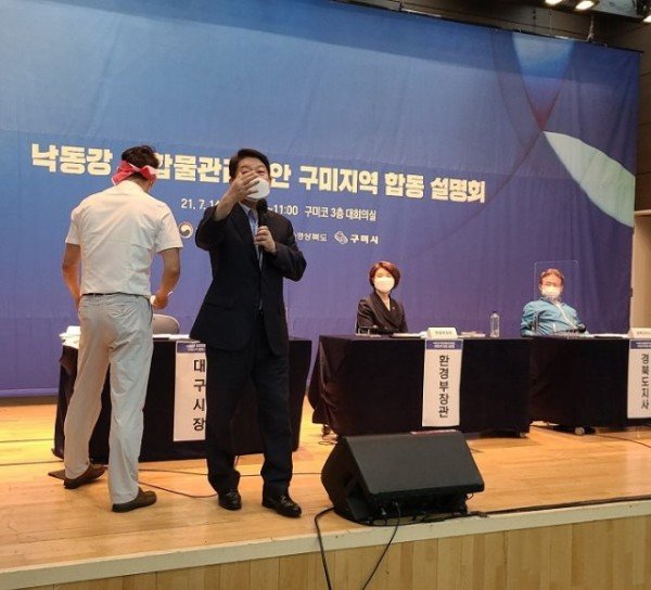 Photo description: Gumi-co Nakdong River Integration Management Plan The site of Gumi Regional Information Session, there were loud voices like horse wars rather than precise arguments through discussions.(2021.7.14.)