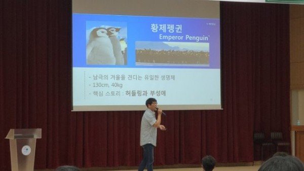 Photo explanation: "Finding a Way at the End of the World" lecture by Kim Jin-man, tears of Antarctica, conference room of the industry-academic cooperation hall of Geumo University of Technology