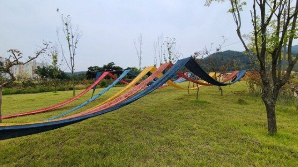 사진 설명: ‘새마을운동테미공원에서 전시되고 있는 천연염색전시회, 친환경육아용품 다함담아&자연을물들이는연유에서 진행하고 있다.