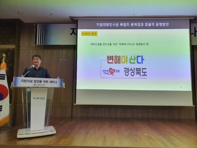 경북 의정회 주최로 열린 지방자치 세미너에서 박중보 경운대교수는 주제발표에서 "경상북도청 인터넷을 치면 『변해야 산다』라는 썸네일이 나타난다, 무엇을 어떻게 하는 것이 변하는 것인지 감을 잡지 못하겠다."라는 말로 경북의 유연하지 못한 시대상황 인식에 대해 지적하기도 했듯이, 오랜 정치적 이념에 매몰되어 변하지 않는 현실을 극복하자고 제안했다.