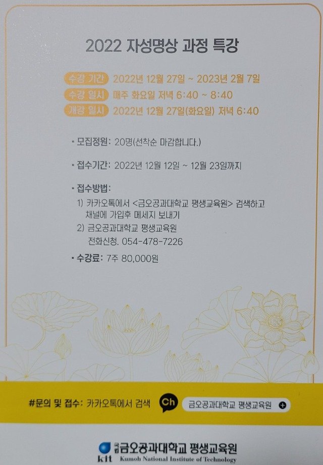 사진 설명: 자성명상 대학 팜플렛