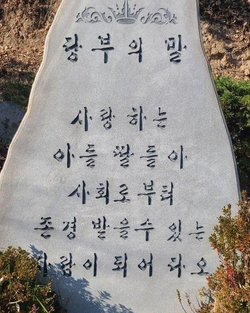 Photo description: A monument inscribed with a message to a child at Seah Arboretum in Chilgok-gun