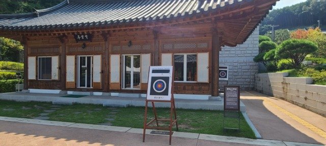 사진 설명: 구미성리학역사관 긍운정 앞마당에 설치된 금궁스포츠 시설, 집중력과 자신감을 높여주는 운동이다.