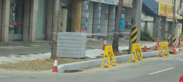 사진 설명: 단단한 화강암으로 된 멀쩡한 도로 연석을 새로운 것으로 교체하는 시간의 힘
