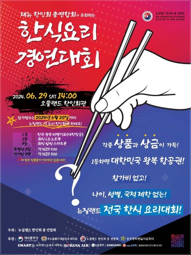 (New Zealand = KTN) Reporter Park Chun-tae = The 'Korean Food Cooking Contest' hosted by the New Korean Association (Chairman Hong Seung-pil) will be held in New Zealand for the first time.
