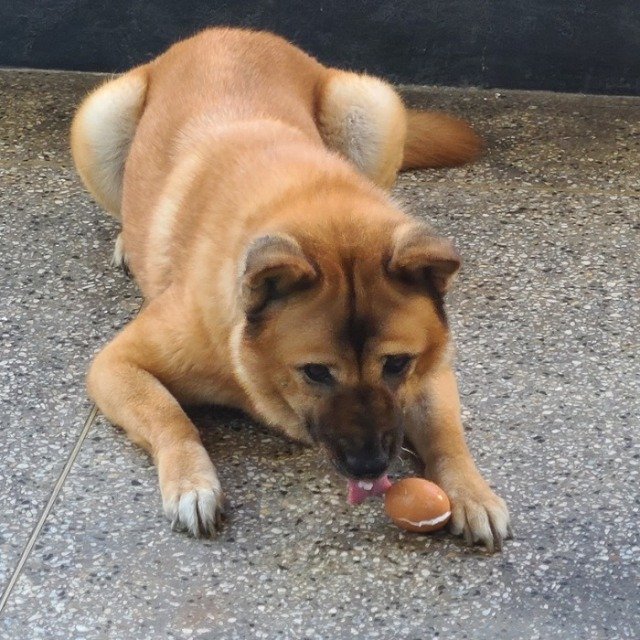 계란을 맛있게 먹는 진도개, 계란은 인간만 먹는 것이 아니다. 삶은 계란을 동물도 먹을 권리가 있다.