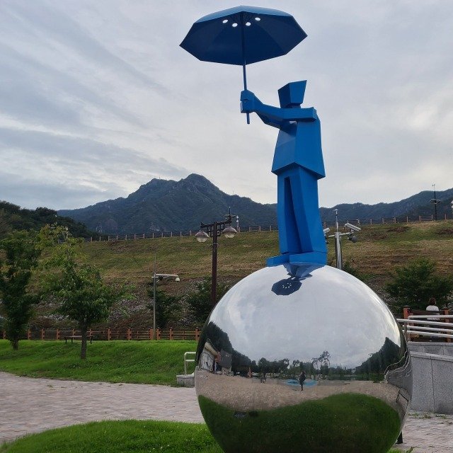 우산을 받쳐든 동행이라는 작품은 환경을 보호하여 지구를 보존하고 이웃을 사랑하는 봉사단체인 로타리클럽의 활동을 몸소 실천하는 모습을 모습을 거울과 우산을 상징적으로 형상화 했다는 의미가 담겨져 있다.