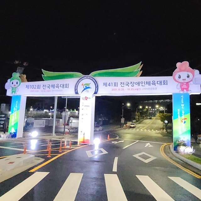 제102회 전국체전 개막식이 열린 구미시민운동장 입구 전경, 이번 전국체전을 유치하기 위해 구미시에서 많은 공을 들였다.