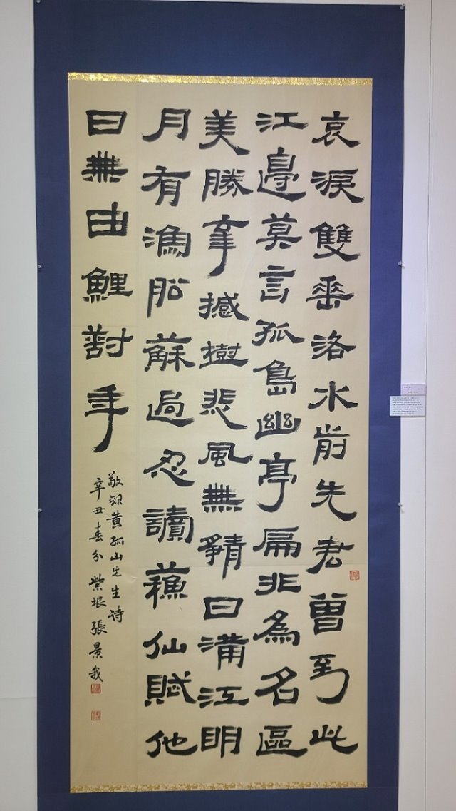 구미예갤러리에 전시된 고산 황기로선생의 시, 자은 장경아 작가 작품