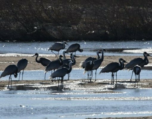 2월 4일, 구미시 낙동강 해평·강정 습지에 내려 앉은 천연기념물 재두루미 55마리
