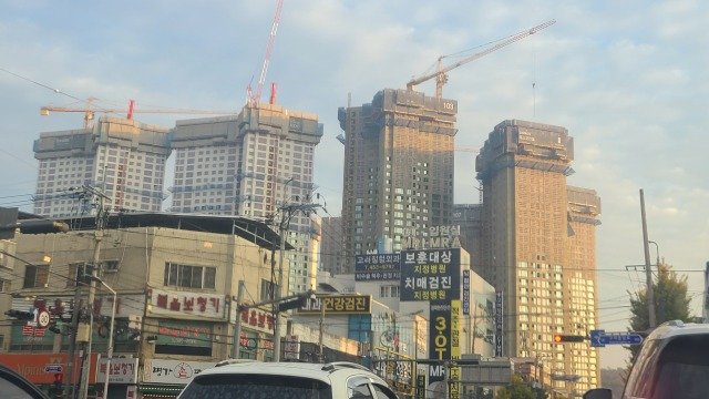 사진설명: 2022년 11월 1일 구미시 원평지구 재건축아파트 공사현장 전경