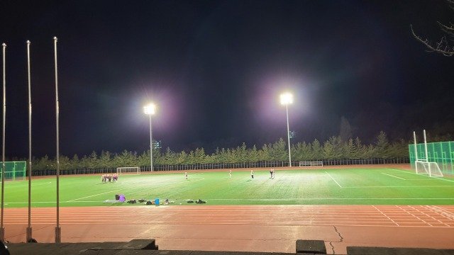 사진 설명: 금오공대 운동장에서 훈련 중인 32년 전통의 미식축구부 레이븐스