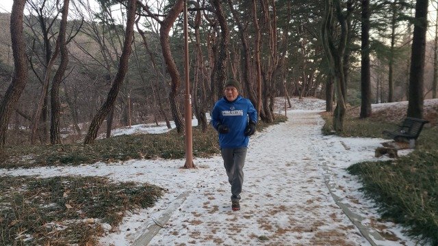Photo description: Jung Joon-geun, advisor to Gumi Marathon Club, who runs around Geumosan Mountain