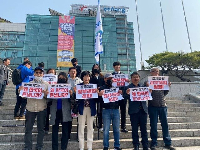 사진 설명: 민주당 경북도당, 강제동원 정부해법 강행 규탄 현장