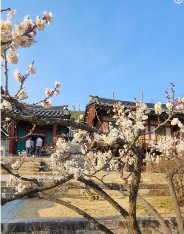 Photo description: Spring messenger plum blossoms around Dosanseowon Confucian Academy in Andong.