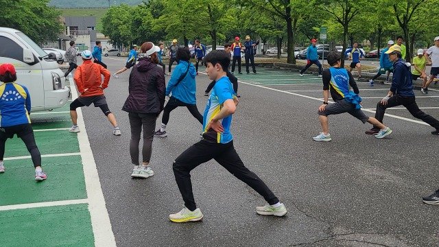 Photo Description: Gumi Marathon Club Sunday morning at the Geumosan training site, a challenge for a healthy future.