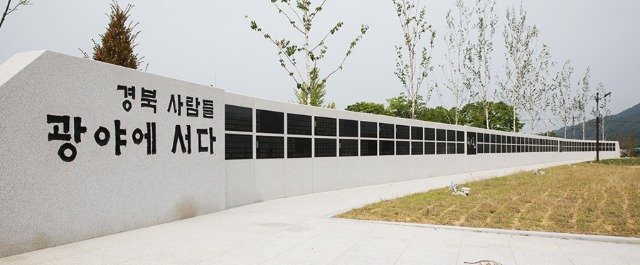사진 설명: 한국독립운동의 성지 안동에 위치한 경북독립운동기념관의 독립운동가 이름이 새겨진 추모벽