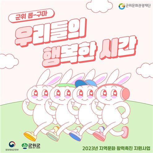 (전국= KTN) 김도형 기자= (재)군위문화관광재단은「2023 지역문화 활력 촉진 지원사업」中 <지속가능한 청년문화사업>의 일환으로, 오는 23일부터 7월 7일까지 청년 모임 지원<우행시(우리들의 행복한 시간)> 사업 참여자를 모집한다고 밝혔다.