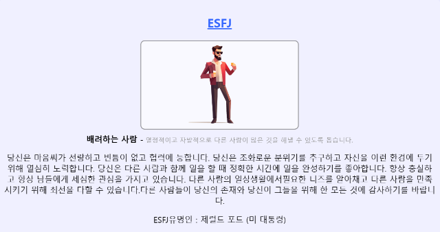 사진 설명: MBTI성격유형 검사의 한 사례