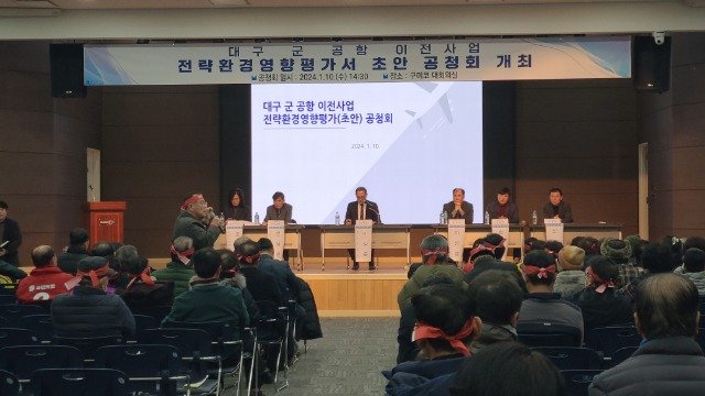 Photo description: Draft strategic environmental impact assessment for Daegu military airport relocation project, public hearing site, site where residents are extremely angry about noise damage,