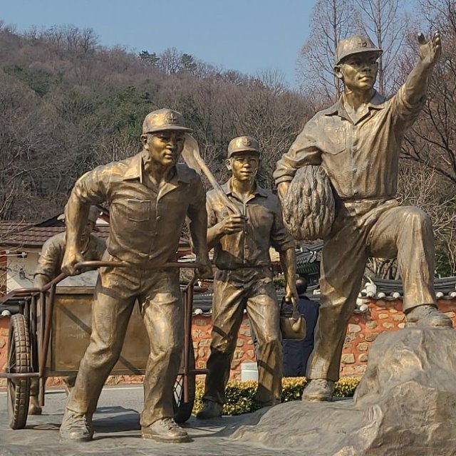 박정희 대통령 생가 앞 새마을운동 조형물, 인간의 육체노동은 먹고 살기 위한 수단으로서 신성한 것이다.