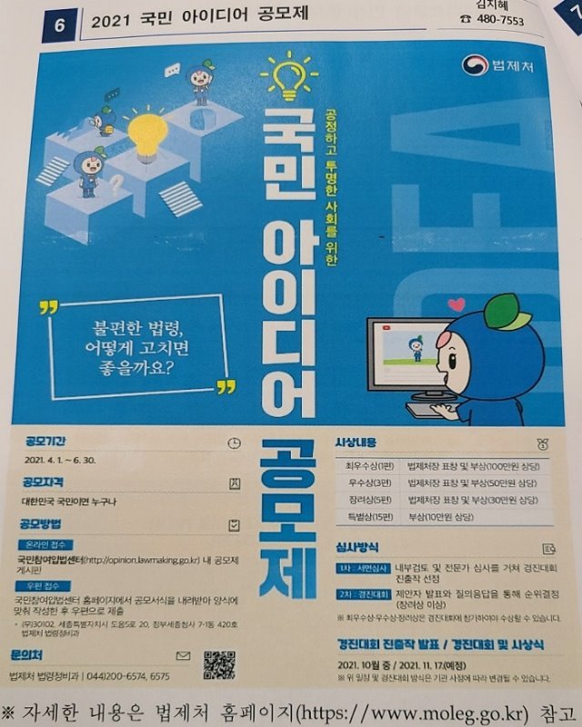 형곡2동 주민자치위원회 정기회의에서 소개된 국민아이디어 공모제 포스터