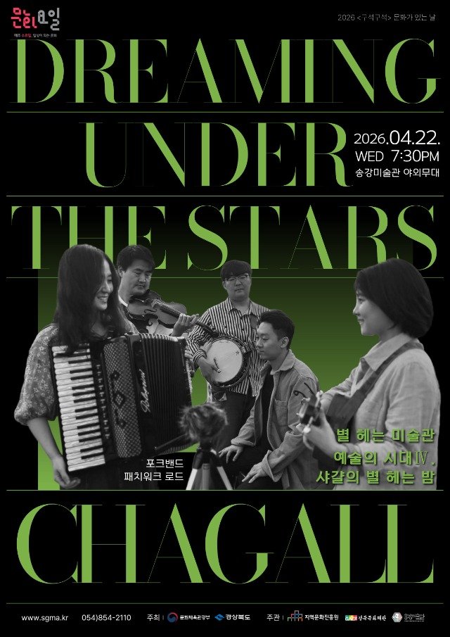 #송강미술관 #별헤는미술관 #샤갈의별헤는밤 #샤갈공연 #패치워크로드 #야간공연 #구미문화 #경북문화 #문화가있는날 #구석구석 #아이리쉬포크 #융복합예술#샤갈전 #마르크샤갈 #별헤는밤 #야외공연 #경상북도 #구미시 #예술공연#2026공연 #4월공연 #미술x음악 #지역문화 #문화체육관광부 #경북도청