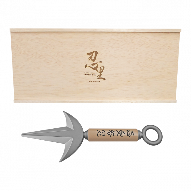 ‘미나토의 쿠나이’는 미나토의 대표 기술 ‘비뢰신의 술법’을 구현할 때 사용되는 핵심 무기로, 쿠나이 본체에는 작품 속 상징적인 문구 ‘인애지검(忍愛之剣)’이 정교하게 각인돼 있다. 또한 시노비자토 로고가 새겨진 목제 상자에 담겨 제공돼 소장 가치를 한층 높였다.