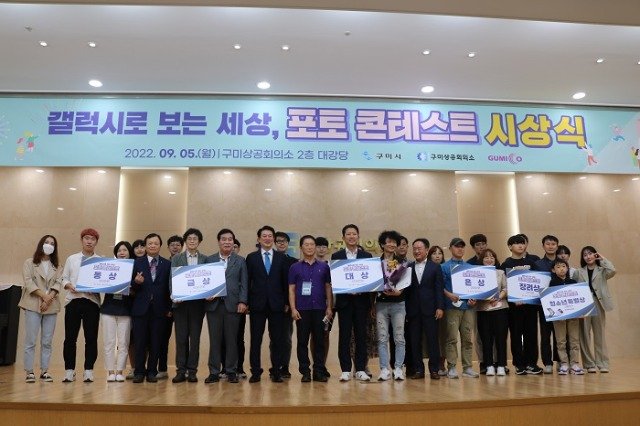 (전국= KTN) 김도형 기자= 구미상공회의소(회장:윤재호)와 구미시는 9월 5일(월) 10:20-11:30, 구미상공회의소에서 윤재호 회장, 김장호 구미시장, 김현도 삼성전자 부사장, 안주찬 구미시의회 의장, 곽호상 금오공과대학교 총장을 비롯한 기관단체장, 공모전 수상자 등 120여명이 참석한 가운데 ‘갤럭시로 보는 세상, 포토콘테스트 시상식 및 전시회’를 개최하였다.