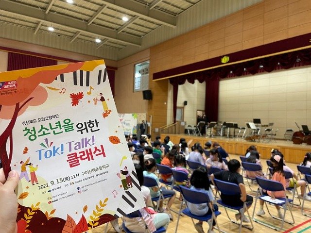 (전국= KTN) 김도형 기자= 구미신평초등학교(교장 이광욱)는 2022년 9월 15일(목), 11시부터 초등부 학생을 대상으로 본교 강당에서 ‘청소년을 위한 톡톡클래식’ 행사를 실시하였다.