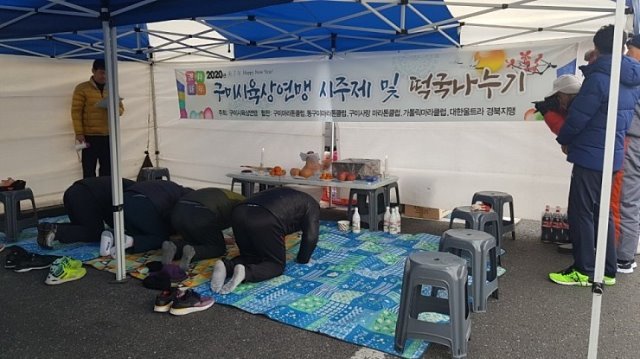 (전국= KTN) 김도형 기자= 12일 오전 8시 30분 구미시 금오지 대주차장 일원에서 구미시육상연맹 주최 및 주관으로 '2020년 구미시육상연맹 시주제 및 떡국나누기' 행사가 열렸다.