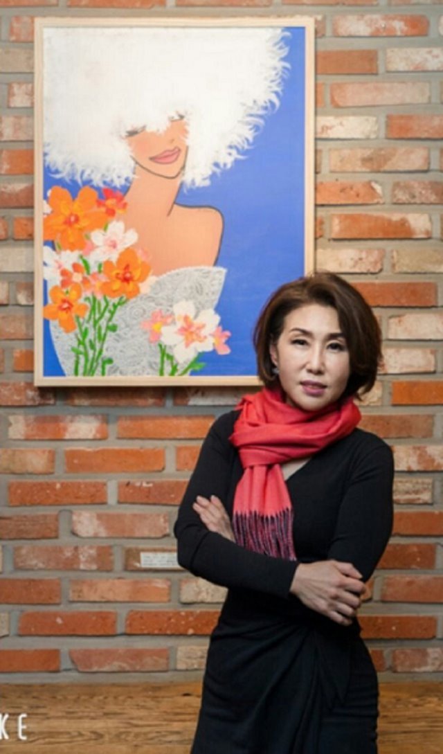 은은한 조명이 비치는 마다가스카르 카페의 벽과 어우러져 수줍은 미소를 드러내는 듯한 백건이 작가의 여인화가 한껏 매력을 발산하고 있다.