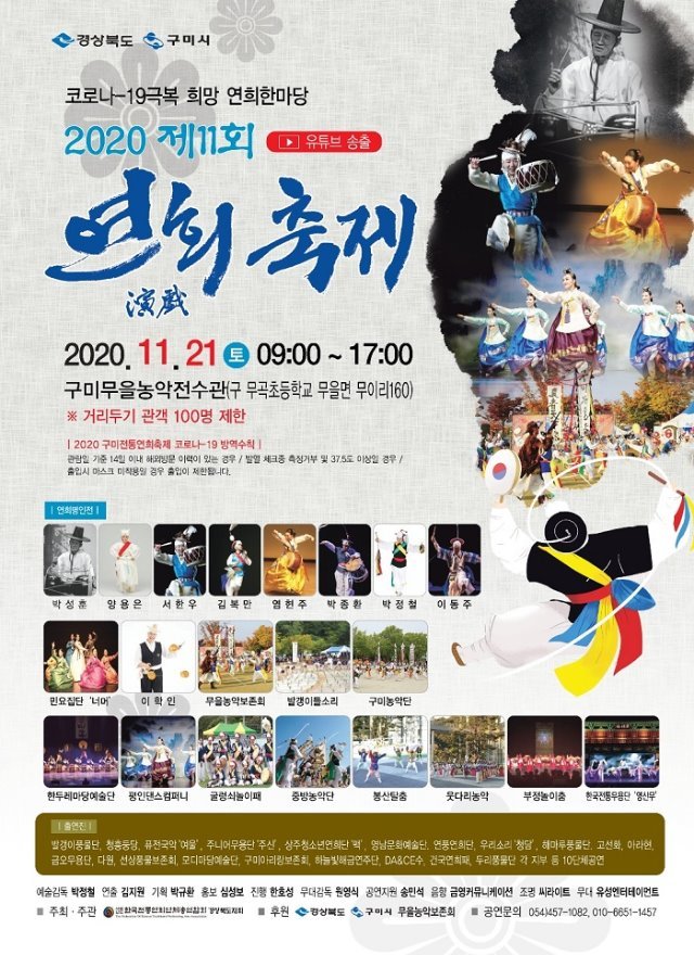 이번 행사는 생활속거리두기 1단계로 관객을 100명으로 하여 한 칸씩 띄어앉기, 마스크 착용 등 철저한 방역수칙을 준수하여 진행되었고, 구미시를 알리고 더 많은 구미시민이 구미 대표 행사인 전국 전통연희축제를 볼 수 있도록 추후에 ‘구미시’유튜브에 송출할 예정이다.