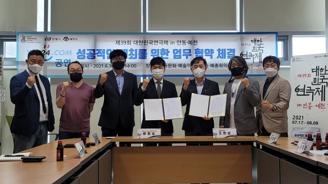 지난 6월 30일 안동문화 예술의 전당 3층 한국예총경상북도연합회 안동지회 회의실에서 진행된 업무 협약식에는 예스24 ENT 사업본부 이희승 본부장과 예스24 대구지사 조무호 부장, 제39회 대한민국연극제 조현상 집행위원장이 참석한 가운데 진행됐다.