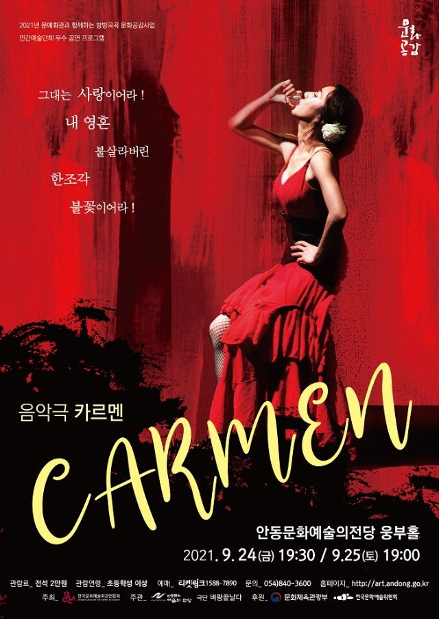(전국= KTN) 김도형 기자= 안동문화예술의전당은‘음악극 카르멘’공연을 24일 저녁 7시 30분과 25일 저녁 7시 웅부홀에서 개최한다.