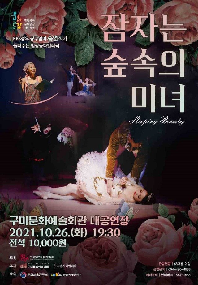 (전국= KTN) 김도형 기자= 구미시(시장 장세용)는 온 가족이 함께 관람할 수 있는 ‘잠자는 숲속의 미녀’발레 공연을 개최한다. 이번 공연은 한국문화예술회관연합회 지원사업인 ‘방방곡곡 문화공감’ 민간우수단체 우수프로그램에 선정됨에 따라 마련됐다.