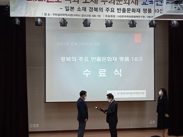 (경북= KTN) 전옥선 기자= 26일 화요일 오후 4시 구미성리학역사관 내 야은관 강당에서 '경북의 주요 반출문화재 명품10선' 이라는 주제로 지난8월부터 10주에 걸친 연수에 대미를 장식하는 수료식을 가졌다.
